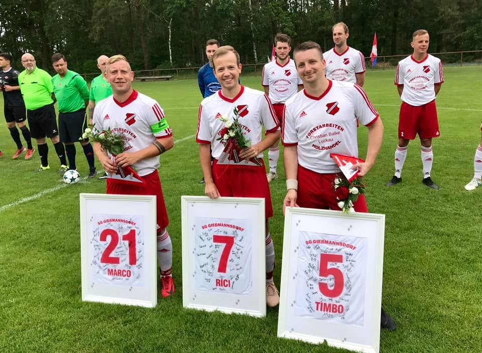 Am gestrigen Sonntag wurden vor der letzten Heimpartie unserer Herren gegen Germania Peickwitz (Spielbericht folgt zeitnah) unsere drei scheidenden Akteure Tim „Timbo“ Bärbock sowie das Geschwister-Duo Ricardo und Marco Lehmann verabschiedet.