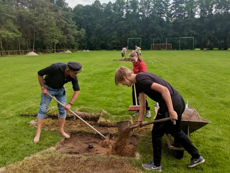 Am heutigen Freitag fand der nächste Schritt zur automatischen Beregnungsanlage statt. Nachdem die Firma die einzelnen Regner auf dem Platz installiert hat, wurden die entstanden Löcher durch Frauen, Juniorinnen, Herren und Altherren heute wieder gefüllt und der zuvor herausgenommene Rasen eingesetzt und bewässert.